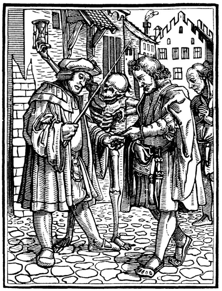Death comes upon the lawyer in the street while he is being paid by a rich client.